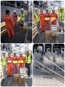 The campaign received strong backing from Orient Overseas Container Line (OOCL), Seaspan Shipping, Anglo Eastern Ship Management Hong Kong, Fleet Management Hong Kong, Wan Hai Lines (SITC Shipping), and Pacific International Lines. Fr. Valan of Stella Maris also joined the team, offering spiritual support and encouragement to the seafarers