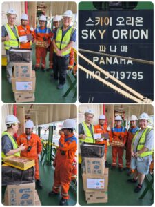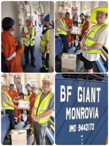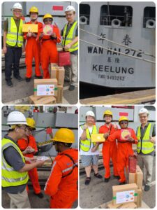 To celebrate the 2025 Mid-Autumn Festival, the Hong Kong International Seafarer Services Centre (HKISSC)—established by the Merchant Navy Officers’ Guild – Hong Kong and the Amalgamated Union of Seafarers, Hong Kong—successfully carried out a crew visit campaign for international seafarers arriving in Hong Kong. The initiative ran from September 1 to October 3, with generous support from Stella Maris and various shipping companies.