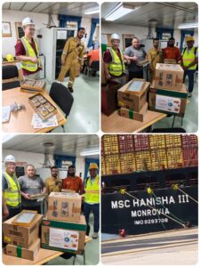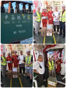 Undeterred by scorching sun or pouring rain, the team visited 109 merchant vessels and reached over 2,450 seafarers—successfully meeting the campaign’s target. The provisions and souvenirs prepared by HKISSC were warmly received, with many seafarers expressing deep gratitude and appreciation for the care shown by the two Hong Kong unions.